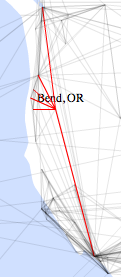 The most boring of the clusters, the area around Seattle is disappointingly average. Tightly connected to each other, it doesn’t look like Washingtonians are big travelers compared to the rest of the West, even though a lot of them claim to need a vacation!