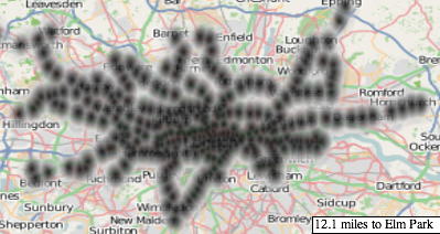 I never lived in London, but my Gran was born within sound of the Bow Bells and I’ve spent enough time there to know how important the London Underground network is. The distance as the crow flies is far less important than how accessible the start and destination of any journey are by Tube. I’ve always wondered how the city would look if you could see how far everywhere was from a station, so I grabbed a list of the locations (compiled by OpenStreetMap volunteers) and uploaded them to OpenHeatMap. A few surprises leapt out at me: